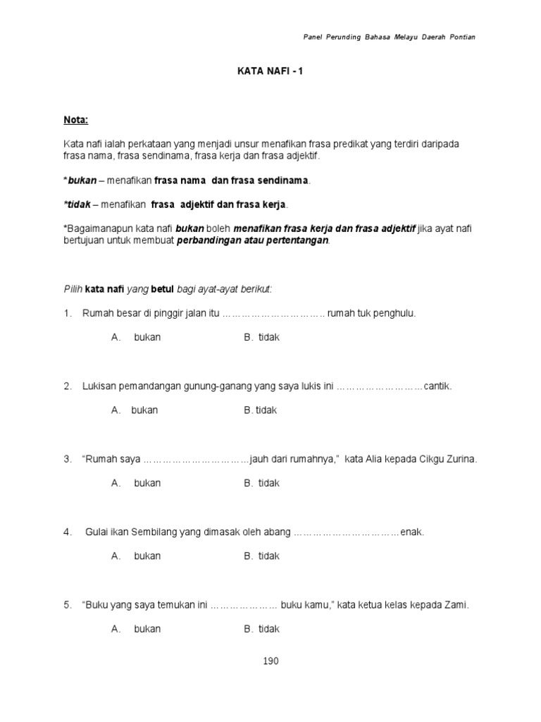 Kata Nafi Tahun 5 DRAFT. Latihan soalan online bahasa melayu tahun 1 5 latihan soalan. Terdapat dua kata nafi iaitu bukan dan tidak.
